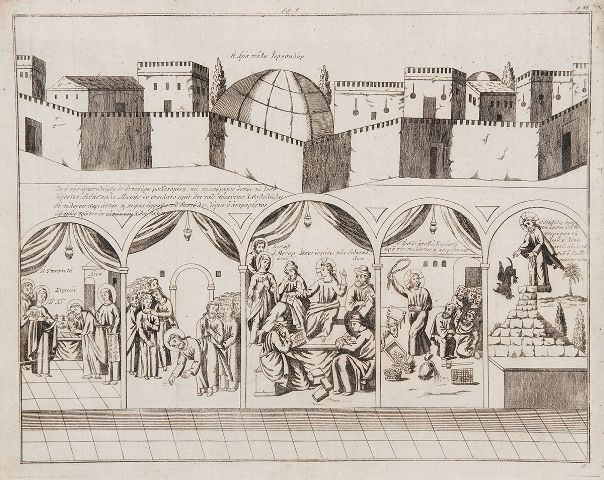 Μέσα από επιλεγμένα χαρακτικά αναπτύσσεται η πορεία του ταξιδιού του προσκυνητή στους Αγίους Τόπους, εντός και γύρω από την Ιερουσαλήμ, τον βασικότερο σταθμό του μακρινού ταξιδιού. Διαμορφώνεται με αυτόν τον τρόπο ο χάρτης των ιερών προσκυνημάτων, η ιερά γεωγραφία της Αγίας Γης. Στην Ιερουσαλήμ βρίσκεται το σημαντικότερο προσκύνημα και το κατεξοχήν λατρευτικό μνημείο του χριστιανισμού: το σύνθετο και πολύπλοκο κτιριακό συγκρότημα του ναού της Αναστάσεως, με το πλήθος των επιμέρους προσκυνημάτων εντός αυτού.