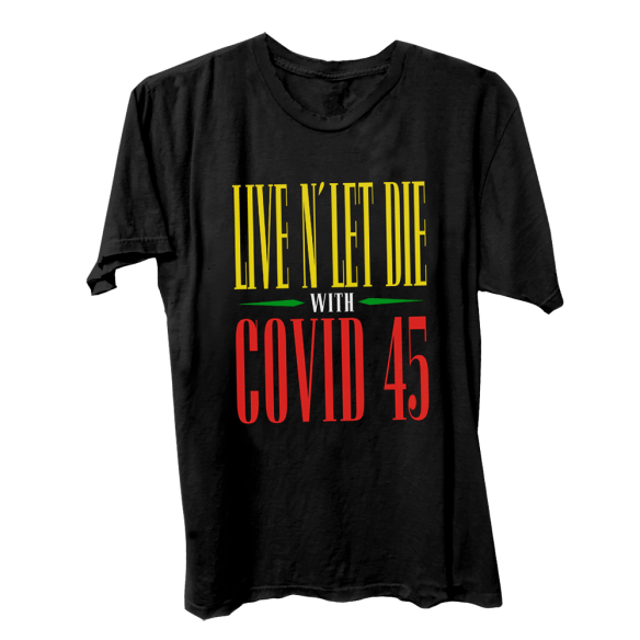 ⍆Η νέα εκδοχή στην εποχή του κορωνοϊόύ με στόχο τους χειρισμούς Τραμπ είναι... το «Live N 'Let Die with COVID 45», το νέο t-shirt της μπάντας. Το COVID-19 είναι το επίσημο όνομα του κορωνοϊού αλλά η νέα εκδοχή με τον αριθμό 45 παραπέμπει στον 45ο Πρόεδρο των ΗΠΑ, που δεν είναι άλλος από τον Ντόναλντ Τραμπ.